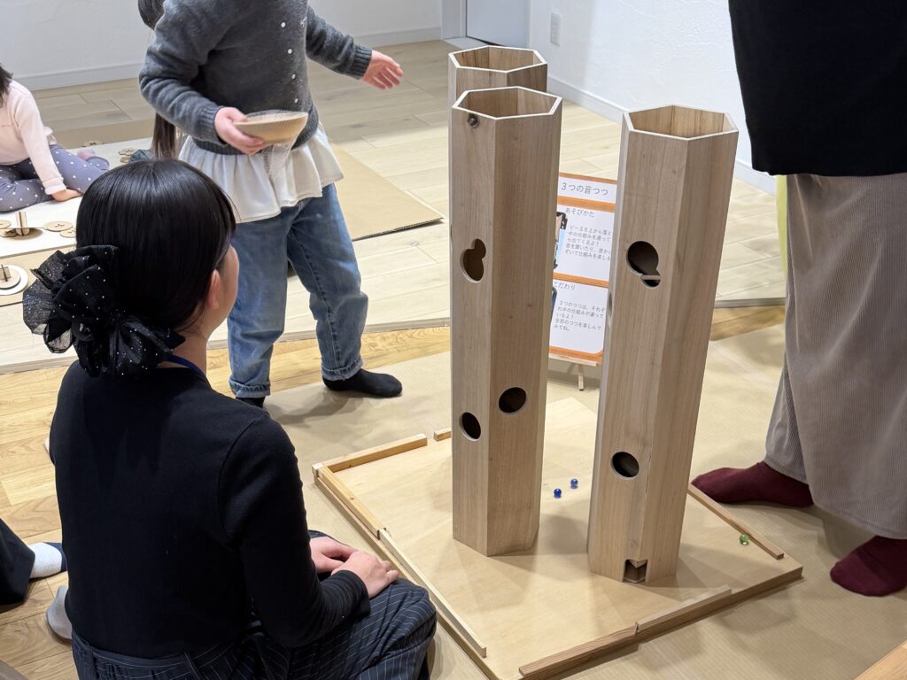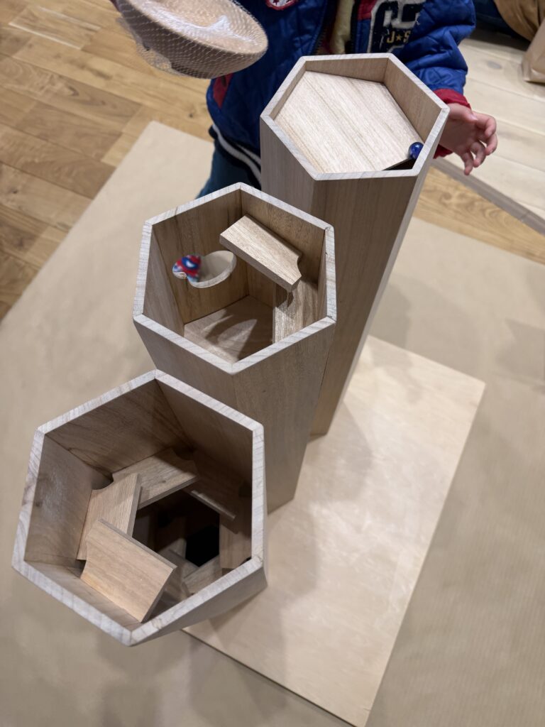小さなお子さんも楽しくビー玉を転がします。