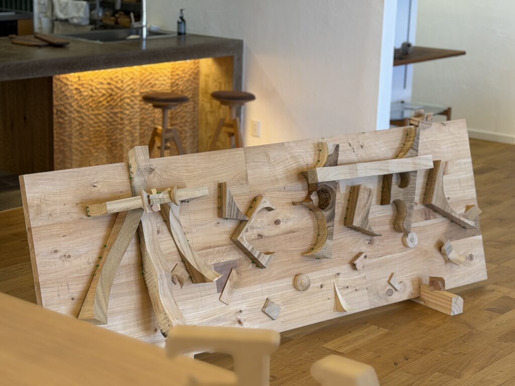 端材で表したアイキャッチの看板が